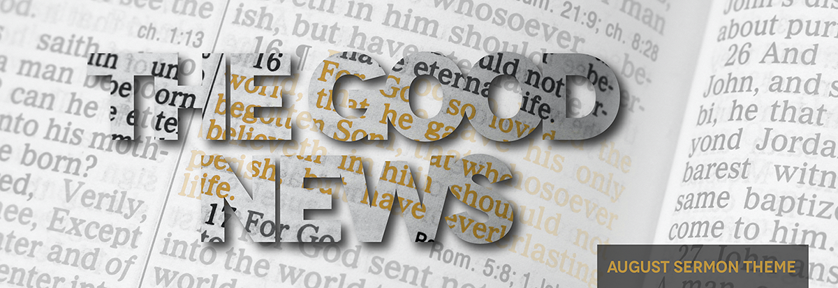 The five Sundays in the month of August all fall under the theme, The good news. Each service deals with the core contents of the gospel. The term “gospel” derives from Old English godspell, a word-for-word translation of the Greek term euangelion, which means “good news” or “glad tidings.”